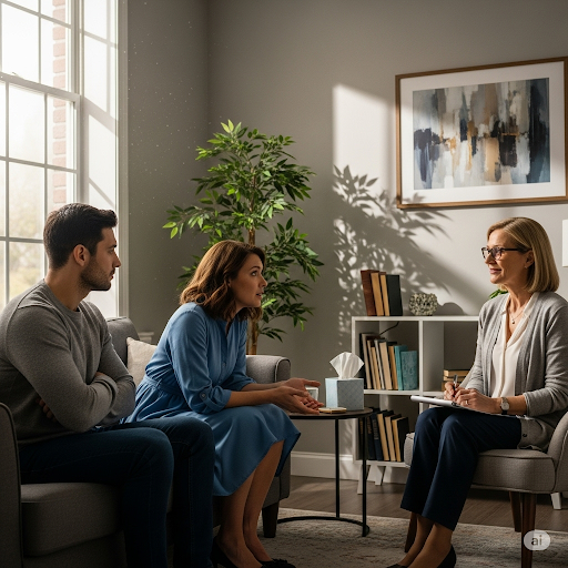 A peaceful space for couples to reconnect and express feelings openly.